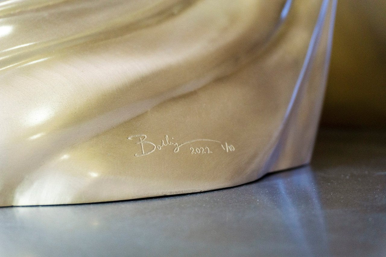 Handcrafted at Bollinger Atelier, the Double Wave Table is cast in bronze using traditional techniques that celebrate both craftsmanship and material integrity. Its twin-wave design amplifies the sense of movement and balance, while the smooth, hand-finished bronze surface captures and reflects light like sunlit water, radiating warmth and quiet sophistication.